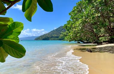 Tilbake ved lodgen for lunsj og eventyr på egen hånd. Det vil på disse trakter kunne innebære snorkling på korallrevene, guidet havkajakktur til utkikksklippen ved "Secret Cove" for å se solnedgangen og store muligheter for å møte både flaskedelfin og grønn skilpadde på veien ... Ellers er det bare helt nydelig å slappe av på egen veranda, i baren eller på stranden. Livet er ganske så herlig her hvor regnskogen møter havet.