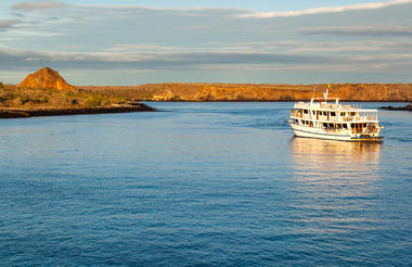 In the morning visit South Plaza, one of the smallest islands in the Galápagos, which has one of the largest populations of land iguanas. Walk along a path through a cactus forest and view a combination of dry and coastal vegetation on this lively island, home to a wide range of fauna, including incredible birdlife. Spot red-billed tropicbirds and indigenous swallow-tailed gulls resting on the cliffs, and sea lions playing in the waters.