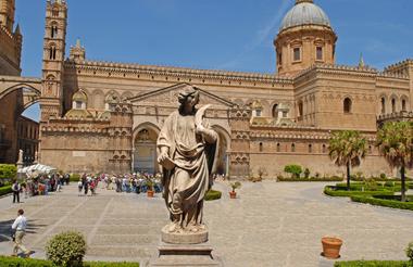 (Fr) Heute besuchen Sie die quirlige Hauptstadt Siziliens, Palermo, nicht nur berühmt für seine Bauwerke, sondern auch für seine Straßenküche. Ihr Reiseleiter bringt Sie zu den besten Imbissen der Stadt und kennt so manche interessante Geschichte zu den verschiedenen Köstlichkeiten. Während unserer Besichtigungstour sehen Sie u.a. die malerische Piazza Marina mit einem der größten Ficus-Bäume der Welt und die Kathedrale, in der sich auch das Grab Friedrichs II von Hohenstaufen befindet. Eine der Hauptattraktionen ist mit Sicherheit der Dom von Monreale, normannische Pracht mit überwältigenden Mosaiken. Anschließend haben Sie etwas Zeit zur freien Verfügung. Danach erfolgt die Rückfahrt zum Hotel. Ca. 160 km (F, A)