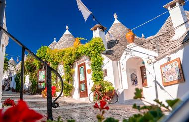 Hotellene i reiseruten ligger i Alberobello. Alternativet er Locorotondo, som er vel så sjarmerende som Alberobello. Alberobello er populært og kjent og er en travel liten by, spesielt i høysesong. Et besøk i Alberobello og overnatting i Locorotondo er en god løsning.