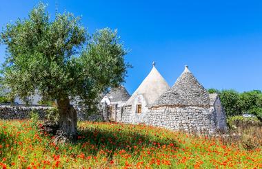 Først passerer dere Noci, som sannsynligvis er den minst kjente og minst turistiske byen i Itria-dalen, men som er verdt et besøk og en kaffepause. Duvende åser fører deg til Alberobello, som har vært på UNESCOs verdensarvliste siden 1996 takket være sine 1500 «trulli» (typiske hus med koniske tak).