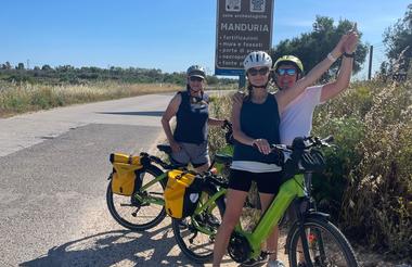 Når dere sykler videre langs kysten mot nord, kommer dere til San Pietro in Bevagna. Her venter en innbydende sandstrand – helt øde om våren og høsten – så her anbefaler vi en sole- og badestopp i det smaragdgrønne vannet i Det joniske hav. Fra San Pietro in Bevagna sykler dere tilbake til Manduria. Her kan dere besøke en gammel arkeologisk utgravning fra Messapica-tiden og Primitivo-museet (primitivo er en rødvin med høyt alkoholinnhold).