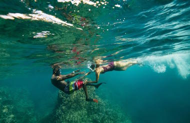Morning and Afternoon Tours are available with a professional crew on board that, while sailing through the blue ocean, will delight you with delicious cocktails and soft drinks. During the cruise we take a break, at a secret enchanted place, to enjoy the water activities and explore the area. During your snorkeling tour you will have the opportunity to see amazing species like puffer fish, starfish, octopus, manta rays and much more. In the meantime our chef will prepare a delicious and traditional buffet. We will then continue the navigation in a relaxed atmosphere.