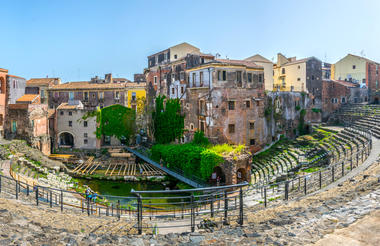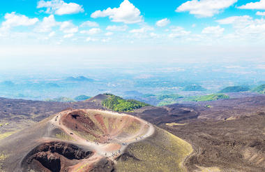 Esmorzar. Al matí, sortida cap al volcà Etna, el més alt encara actiu d'Europa. Pujarem els vessants fins al punt màxim on es permet l'arribada dels autobusos i arribarem fins al refugi Sapienza, a 1.800 metres d'altitud, des d'on es poden observar alguns dels cràters apagats, els anomenats Crateri Silvestri. Durant segles, el volcà ha creat un lloc on natura, cultura i història s'han unit per donar lloc a un paratge únic al món. Dinar. A la tarda, la nostra ruta ens portarà fins a Taormina, magnífica ciutat situada als vessants de la Muntanya Taure. Realitzarem una visita panoràmica per la ciutat per descobrir els seus carrerons romàntics i visitarem el teatre Grec, des d'on obtindrem unes magnífiques vistes de l'Etna i el mar Jònic. Tornada al nostre hotel a la Regió de Catània. Sopar i allotjament.