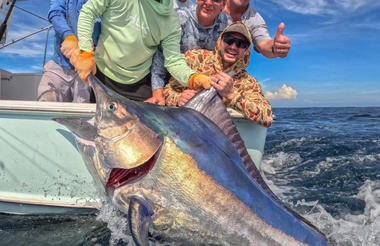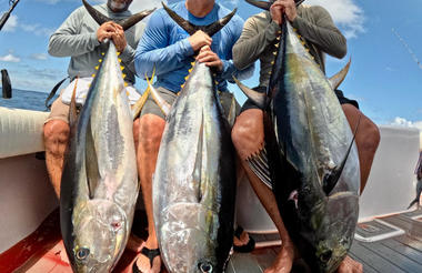 Your charter includes conventional and fly gear, tackle and bait. Your crew will have a constant supply of snack and fresh fruits prepared and at the ready and as well will provide you with a hot lunch each day. Often with a just caught tuna or dorado, a crew member will whip up fresh Sashimi or Ceviche for your enjoyment. Of course our coolers will be fully stocked with water, beer and soda.