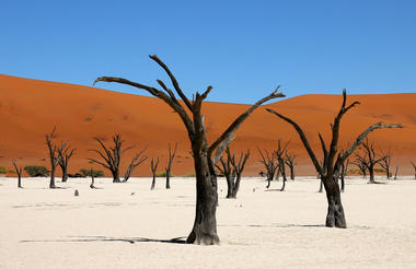 Sie verbringen heute den gesamten Tag im Namib-Naukluft National Park. Der Tag beginnt mit der Ersteigung der Düne 45, von woaus man einen einzigartigen Blick über die Wüste hat. Ein absolut unvergessliches Erlebnis. Danach nehmen Sie den Transfer (Fahrt ca. 10 Minuten im Allrad Fahrzeug) nach Sossusvlei und Deadvlei) und erkunden diese unwirklich erscheinende Landschaft zu Fuβ. Am Nachmittag besuchen Sie als abschließenden Höhepunkt des aufregenden Tages den Sesriem Canyon.