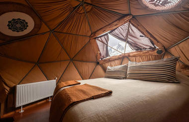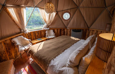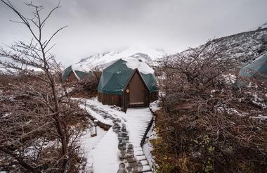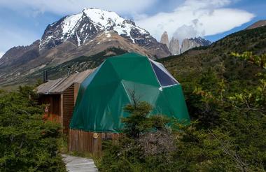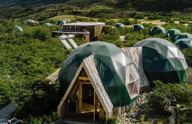 The day ends with our arrival and overnight stay at EcoCamp Patagonia, nestled in the heart of the park with a view of the Torres. During summer the sun sets around 11pm, so upon arrival there's plenty of light to admire the Patagonian steppe with its guanacos and snow-peaked mountain horizon.