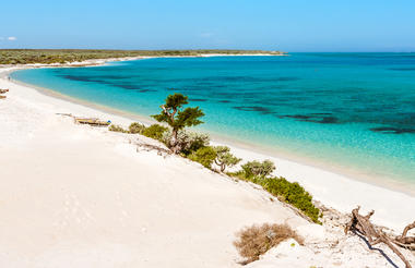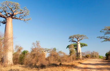 Kurz nach Ambatomilo begegnen Ihnen riesige Baobabs, die in Gruppen wachsen und wie gigantische Bonsais wirken. Die sandige Piste führt weiter, bis sie auf den blendenden Kontrast von schneeweissem Sand und der Farbenpracht zwischen Smaragdgrün und Saphirblau des Horizonts trifft.