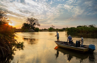 The final highlight of your safari trip is the world-famous Chobe National Park, known for its large herds of elephants and buffalo that congregate along the Chobe River. Treat yourself to a romantic champagne breakfast while cruising along the river, enjoying the tranquil scenery and abundant wildlife. The lodge is a 15-km drive from Kasane International Airport, initially on a paved road to the Sedudu Gate (entrance to Chobe National Park). The final stretch is on dirt roads suitable for four-wheel drive vehicles only.