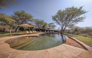 Overlooking a kopje and sweeping plains across the river, the camp’s main areas are designed for enjoyment of the expansive view and being captivated by the colours of a spectacular Serengeti sunset. An open-plan lounge, dining room with large balcony, and a sunset viewing platform with camp fire ensure that all delicious meals and satisfying drinks are accompanied by a stunning view. A large swimming pool invites guests for a refreshing swim during the heat of the day.