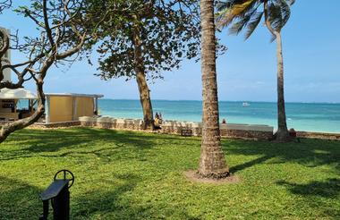 Nach der Landung in Mombasa am Morgen heißt uns die warme Küstenluft Kenias willkommen. Nach den Einreiseformalitäten und der Gepäckannahme treffen wir unseren örtlichen Fahrer, der uns zum Transferbus begleitet. Während der Fahrt zur Severin Sea Lodge gewinnen wir erste Eindrücke vom lebendigen Treiben entlang der Straßen und der tropischen Vegetation der Küste.