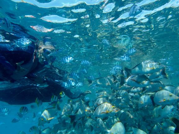 Der erste Halt führt Sie zum Spot „The Aquarium“, wo Sie mit Flossen, Maske und Schnorchel in ein wahres Unterwasserparadies eintauchen. In diesem geschützten Bereich erwartet Sie eine außergewöhnlich vielfältige Lagunenfauna.