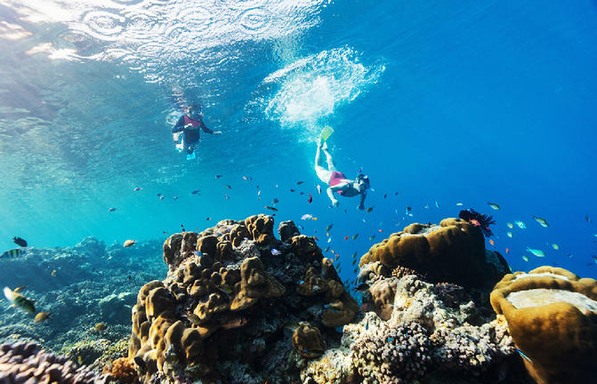 Die Schnorchelstopps hängen von den jeweiligen Meeres- und Wetterverhältnissen ab. Bitte respektieren Sie die Unterwasserwelt, vermeiden Sie jeglichen Kontakt mit Korallen und befolgen Sie stets die Sicherheitsanweisungen der Crew.