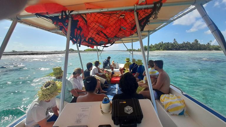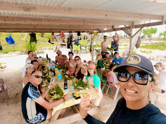Der Anbieter betreibt mehrere Boote, die sich alle auf einem eigens für seine Gäste privat genutzten Motu treffen (bis zu 46 Personen).