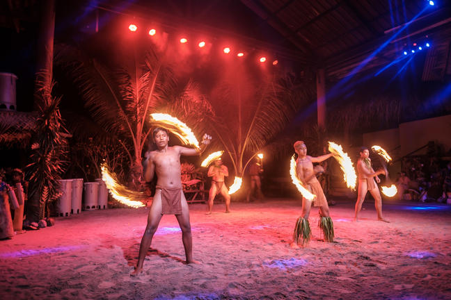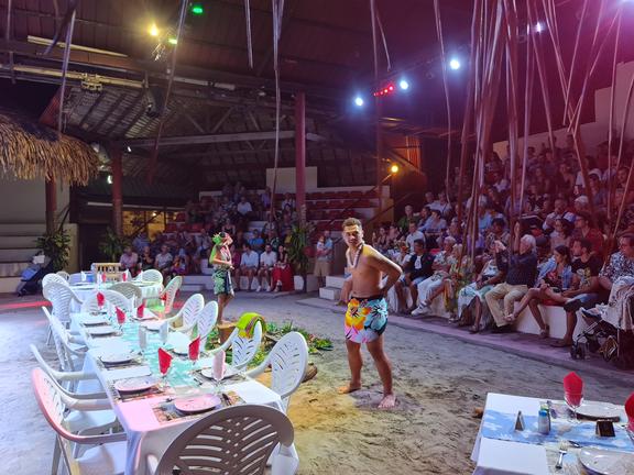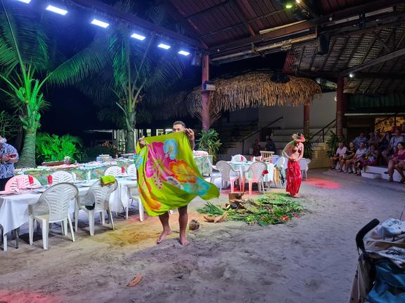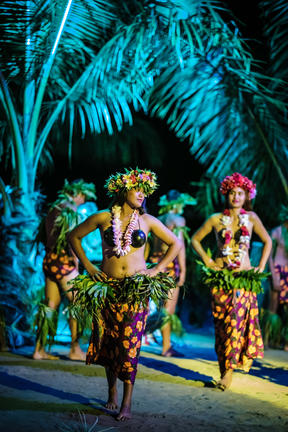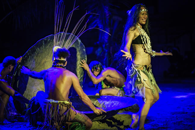 Während des Dinners sorgen Live-Musik und melodische Klänge für echte Südsee-Stimmung. Anschließend erleben Sie eine mitreißende Tahitianische Tanzshow, die die alten Legenden der Inseln zum Leben erweckt.