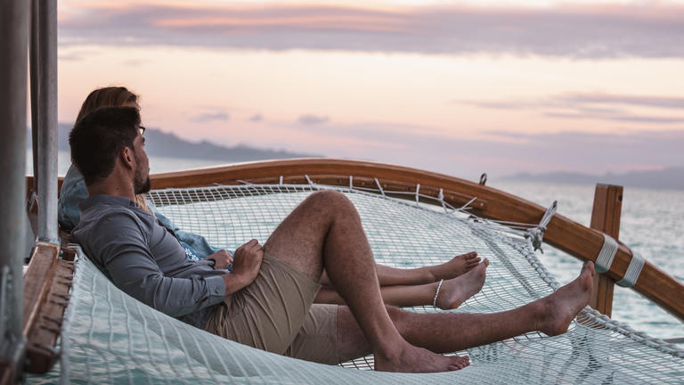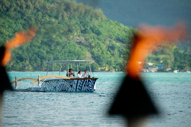 Eine Reise, die Romantik und Magie in einem einzigen, schimmernden Moment vereint. Steige an Bord eines eleganten Kanus, dessen loungeartige Sitzplätze zum Entspannen einladen und dessen sanftes Gleiten über das Meer eine Atmosphäre voller Intimität schafft. Während die zarten Klänge einer Ukulele den Abend umhüllen, versinkt die Sonne langsam hinter dem Pass von Bora Bora – ein Schauspiel aus Licht, das Himmel und Wasser in Gold und Purpur taucht.