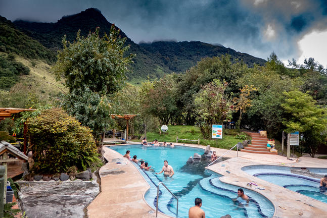 Along the way, we’ll stop for a nutritious lunch before continuing our journey. Afterward, we’ll drive back up to 3,300 meters and stop for a swim in Papallacta’s hot springs, renowned as some of the best in Ecuador. With crystal-clear waters at ten different temperatures, and views of Antisana Volcano on clear days, this is the perfect spot to relax and recharge.
