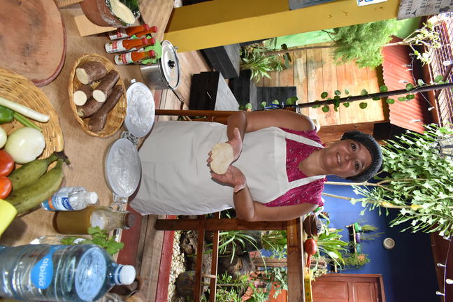 Right after, you will make tortillas, and then throw them into the fire and Tortillas will be ready. Once tortillas are ready, you will taste them with cheese and a little chili if you want to, while the other tortillas are ground, since it is the main ingredient of the Indio Viejo. Afterwards, you will begin to peel and cut the yucca to make Buñuelos. Once peeled and cut, you will grind them to proceed to make the honey that accompanies this dessert. When the Indio Viejo is ready with the Buñuelos, you will proceed to taste the food made by yourselves. At the end of the tour, the recipe will be shared with you.