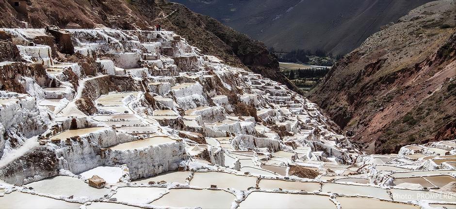 After lunch, journey to the remarkable salt mines of Maras. Thousands of geometric salt pools cascade along the mountainside, their surfaces gleaming under the Andean sun. Still harvested by hand as they have been for millennia, each pool produces its own unique yield. Walking the narrow paths between the terraces, you witness a tradition preserved across generations—a mesmerizing blend of nature, history, and human craft.