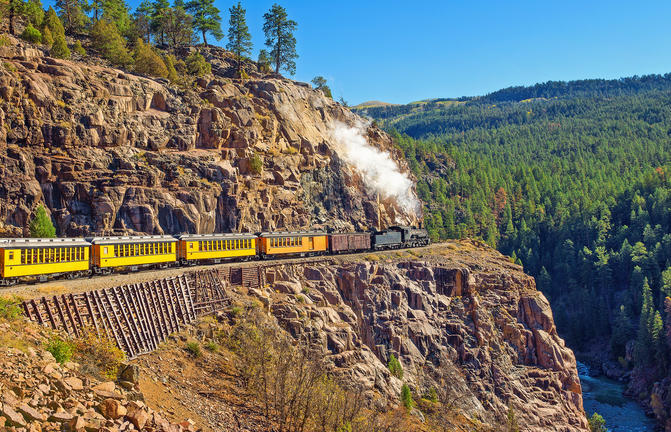 Située près de la frontière du Nouveau-Mexique, dans le sud-ouest du Colorado, la petite ville de Durango propose une variété d'attractions culturelles et de plein air. Durango a quelque chose à offrir à tous les voyageurs, des expériences du Far West aux ruines antiques, en passant par les arts et la culture et les sports d'aventure. Sur le Durango & Silverton Narrow Gauge Railroad, les visiteurs peuvent emprunter un itinéraire sinueux à travers des canyons époustouflants à bord d'un train à vapeur en service depuis 1882. L'histoire du peuple puebloan natif de la région est préservée dans le parc national de Mesa Verde, où les visiteurs peuvent tout apprendre sur ce fascinant patrimoine amérindien. Ne manquez pas le Durango Arts Centre et le Diamond Belle Saloon dans le centre-ville de Durango, considéré comme l'un des piano-bars ragtime les plus célèbres du Far West. Les visiteurs peuvent également pratiquer des activités de plein air, notamment le VTT, la randonnée, le rafting, le kayak, le ski et le snowboard.