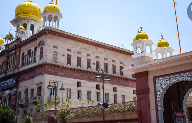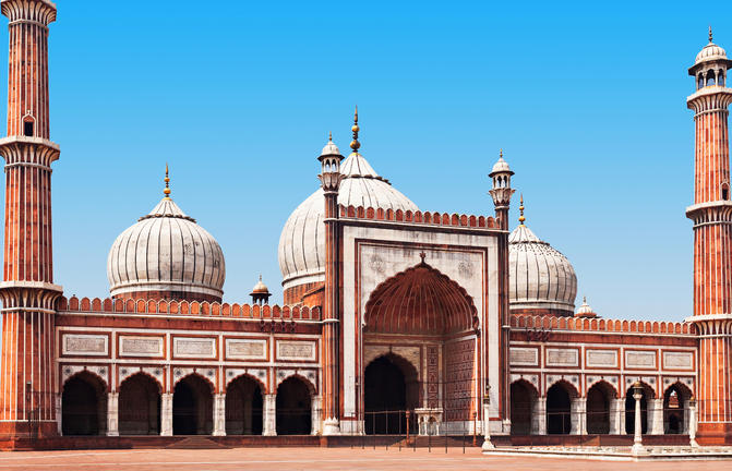Le contraste entre le vieux et le New Delhi est saisissant. New Delhi regorge de larges avenues bordées d'arbres et de bâtiments gouvernementaux majestueux, tandis que le vieux Delhi, historiquement connu sous le nom de Shahjahanabad, est une ville fortifiée historique aux rues étroites et à l'architecture de l'époque moghole. Fondée par Shah Jahan en 1639, la ville est centrée sur le Fort Rouge, une immense forteresse de grès rouge qui a servi de résidence et de centre administratif aux empereurs moghols. À proximité, la mosquée Jama Masjid se dresse avec trois coupoles et d'imposants minarets. Sa cour peut accueillir des milliers de fidèles. Depuis la mosquée, Chandni Chowk s'étend comme un labyrinthe de rues où se faufilent des pousse-pousse entre marchands d'épices, bijoutiers et vendeurs de nourriture. Des havelis délabrés, des temples jaïns et hindous, le Sikh Gurudwara Sisganj, le marché aux épices de Khari Baoli et des bazars couverts jalonnent les ruelles.