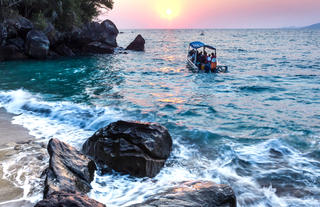 Dotting the ocean just off the northwest coast of Madagascar, Nosy Komba is a spectacularly scenic volcanic island sandwiched between Nosy Be Island and the mainland. This popular tourist destination is known for its remarkably beautiful landscapes featuring a rugged coastline covered in forested hills meeting the crystalline waters and interrupted by magnificent white-sand beach beaches hidden in picturesque coves. Visitors can look forward to an array of activities including visiting the friendly black lemurs at the Black Lemur Sanctuary, discovering a host of fishing villages scattered along the shoreline and exploring the dusty streets of Ampangorinana, the main village, where visitors can browse the market stalls for beautifully embroidered goods, intricate wood carvings and woven baskets. Other highlights include: bird watching, whale spotting, diving, and snorkelling.