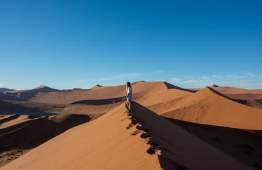 Deadvlei: Often considered the highlight of the trip. This clay pan is dotted with the skeletons of ancient camel thorn trees, blackened by the sun over 900 years. The contrast against the white floor, red dunes, and deep blue sky creates a truly surreal landscape.