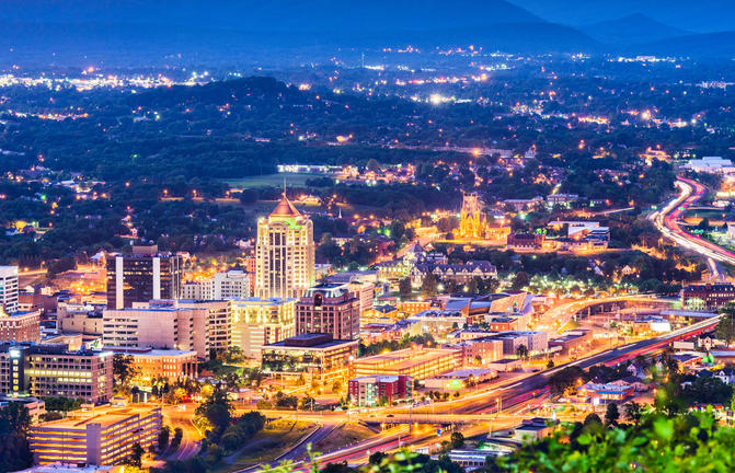 Roanoke est situé dans l'État de Virginie, dans l'est des États-Unis d'Amérique. Connue pour sa grande étoile illuminée du mont Mill Mountain Star, Roanoke offre une gamme d'attractions, des activités de plein air aux sites culturels uniques. La vallée de Roanoke est la porte d'entrée de la Blue Mountain Ridge et offre aux amateurs de plein air un accès à des parcs tels que les voies vertes de Roanoke Valley et la réserve naturelle de Carvins Cove (idéal pour la pêche, la randonnée et le VTT). Les amateurs de culture devraient commencer au Taubman Museum of Art, puis se rendre au Museum of Transportation (exposant une collection interactive de locomotives à vapeur et diesel), puis au Centre sur la place, qui abrite des musées (dont le Musée d'histoire de la Virginie occidentale) et offre également un marché, magasins pour naviguer et de la musique live la nuit.