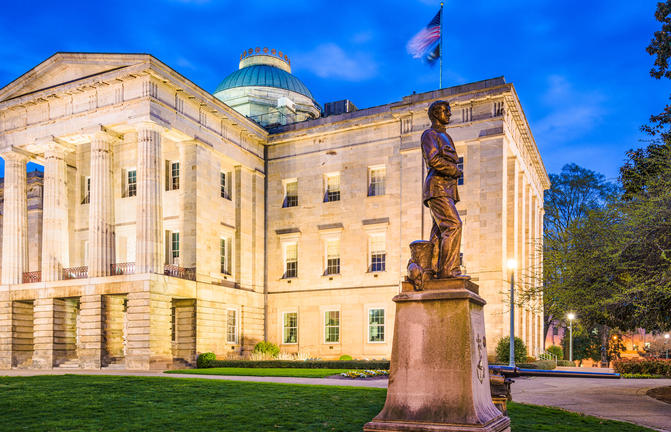 La Caroline du Nord est un État du sud-est des États-Unis qui possède certains des paysages naturels les plus spectaculaires de la côte Est. Des îles-barrières isolées des Outer Banks aux sommets imposants des Smoky Mountains, la Caroline du Nord est une destination de rêve pour les amateurs de plein air. Alors que les amateurs de plage se dirigent vers les magnifiques plages de sable de l'État, les amateurs de culture peuvent découvrir un certain nombre de petites villes avec de fascinants petits musées et galeries, des parcours de golf primés et plus de 100 établissements vinicoles. Des impressionnants navires de guerre aux restaurants raffinés en bord de mer de Wilmington, en passant par les montagnes et les rivières d'Asheville, en passant par la grande architecture morave du XVIIIe siècle de Winston-Salem, vous trouverez certainement de quoi vous entretenir pleinement en Caroline du Nord. Ne manquez pas de visiter Charlotte, la plus grande ville de l'État, qui abrite d'excellents musées, notamment le célèbre NASCAR Hall of Fame.