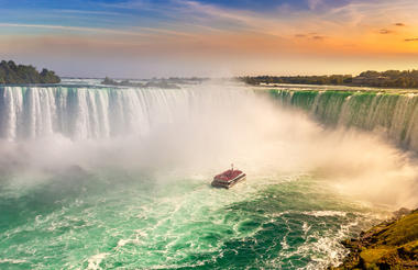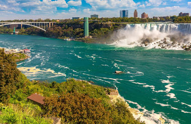 Niagarské vodopády jsou ve skutečnosti dva. Na americké straně se nazývají American Falls, na kanadské Horseshoe Falls, jenž jsou všeobecným míněním považovány za krásnější a efektnější. Oba vodopády byste mohli najít na konci řeky Niagary, jež spojuje Erijské jezero s Ontariem. Slovo Niagara pochází ze starého jazyka prapůvodních obyvatel Ameriky a znamená doslovně „Hřmící voda“.