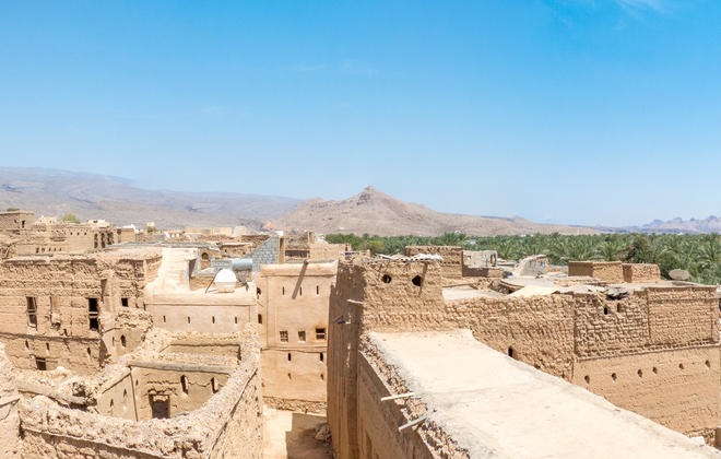 Set against the towering backdrop of the Hajar Mountains, Al Hamra village was founded over 400 years ago, and is one of Oman's oldest and best-preserved mudbrick settlements. This venerated village is renowned for its ancient multi-storey homes built from sun-dried mud, which showcase traditional Omani architecture. Walking through its narrow, winding streets feels like stepping back in time, with many homes still inhabited by locals. Visitors to Al Hamra can explore the heart of the village, which features a bustling plaza and traditional souq. For the culturally curious, the Bait al Safah living museum is where artisans showcase traditional crafts and demonstrate daily life practices. The nearby village of Misfat Al Abriyeen, surrounded by terraced gardens, makes for an enriching visit as well. Adventure seekers often head to the mountains for hiking or visit the Wadi Ghul, also known as the "Grand Canyon of Arabia," located near Jebel Shams, Oman's highest peak.
