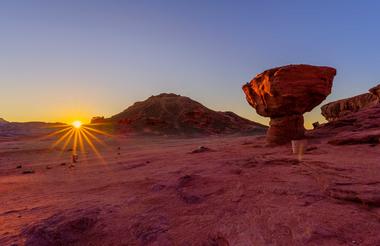 La vallée d'Arava s'étend vers le sud de la mer Morte jusqu'à Eilat, formant le corridor désertique oriental d'Israël le long de la vallée du Rift du Jourdain. Son atmosphère est austère, expansive et majestueuse, définie par un ciel dégagé, des montagnes désertiques escarpées et le rythme de vie lent et durable de cette région isolée. Les visiteurs peuvent explorer le parc de Timna, qui abrite les piliers du roi Salomon, le Mushroom Rock (HaPitriya) et d'anciennes mines de cuivre, ou faire de la randonnée et du vélo sur des sentiers désertiques qui révèlent des formations géologiques uniques. La nuit, le ciel dégagé et la pollution lumineuse minimale font de l'Arava une destination de choix pour l'observation des étoiles et l'astrophotographie. Au cœur de ce paysage austère, les serres de la région sont un exemple frappant de l'ingéniosité moderne au cœur du sable. L'Arava offre aux voyageurs une combinaison rare de merveilles géologiques, d'intrigues historiques et d'isolement serein loin de l'agitation urbaine.