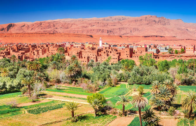 Tafraoute se trouve dans les régions reculées du sud du Maroc, dans une oasis luxuriante entourée de sommets de granit rouge et de formations rocheuses bizarres des Monts Anti-Atlas. L'isolement paisible de cette petite ville, les paysages spectaculaires et l'élégante architecture en terre font de Tafraoute l'une des destinations les plus séduisantes de la région, bien que son emplacement lointain l'empêche des sentiers battus. Vous pouvez facilement passer de belles journées ici tout simplement se détendre et profiter de la beauté et de la tranquillité et de la découverte du marché local dynamique - mais au-delà de la ville se trouve une nature sauvage captivante à explorer. Parmi les attractions incontournables, citons les célèbres Blue Rocks, peintes en 1974 par une équipe de plus de 20 hommes dirigés par l'artiste belge ; la gorge d'Ait Mansour, l'une des oasis les plus exquises du Maroc ; et les villages berbères traditionnels d'Amtoudi, Oumesnat et Emintizket. Si vous êtes à la recherche de l'aventure, essayez le trek difficile jusqu'au Jebel Kest, la plus haute montagne de la région - et apaisez les muscles endoloris avec un hamman traditionnel (bain turc) dans le village après.