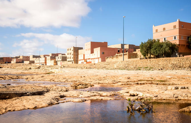 Située dans une ville du sud du Maroc, la ville de Guelmim sert de porte d'entrée du désert. Cette ville marocaine est la capitale de la région de Guelmim-Oued Noun, qui englobe l'angle nord-est du Sahara Occidental ainsi que le sud du Maroc. Cette destination touristique tranquille possède un paysage préservé, d'innombrables trésors culturels. La ville est située le long de la route commerciale historique qui reliait les marchands marocains à Tombouctou au XIXe siècle.