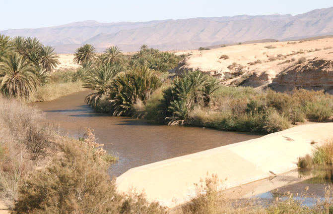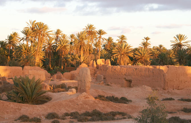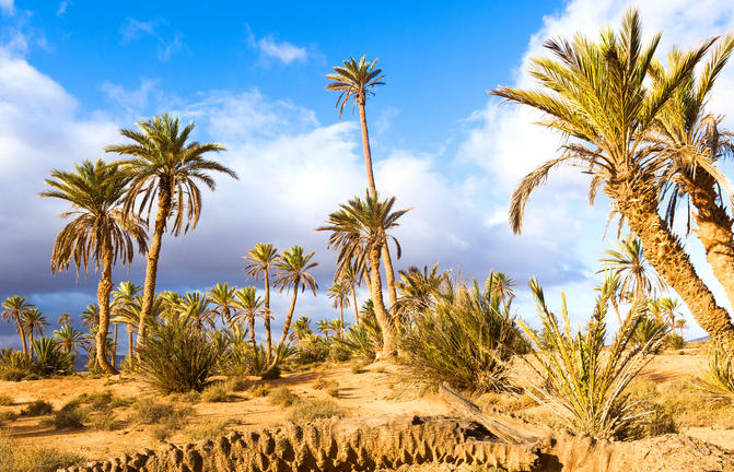 Au cœur des étendues semi-arides du sud du Maroc, Tighmert est une oasis de verdure qui contraste fortement avec son environnement désertique. Située à environ 17 kilomètres de Guelmim, cette oasis a longtemps été une étape clé sur les anciennes routes caravanières, ses origines remontant à l'époque du commerce transsaharien. Les visiteurs peuvent explorer les ksars traditionnels en briques crues et les palmeraies qui mettent en valeur l'architecture durable de la région. Le marché aux chameaux de Guelmim situé à proximité ajoute à l'expérience culturelle en offrant un aperçu du patrimoine pastoral de la région.