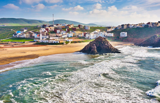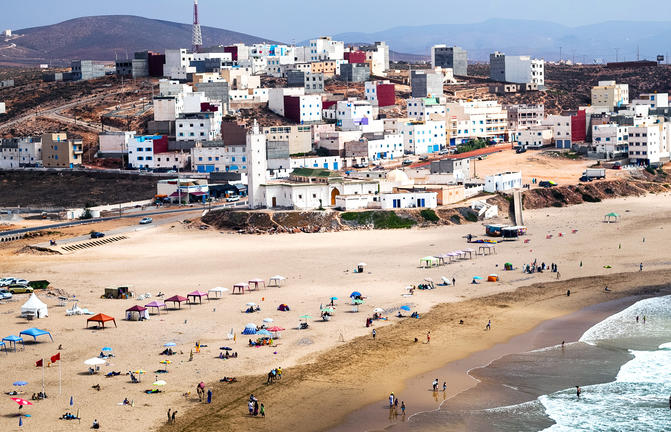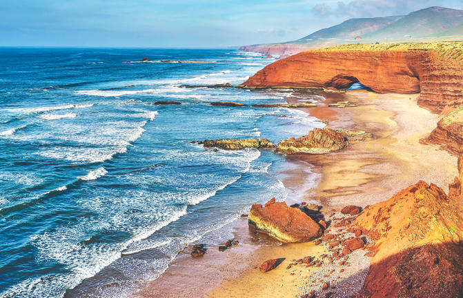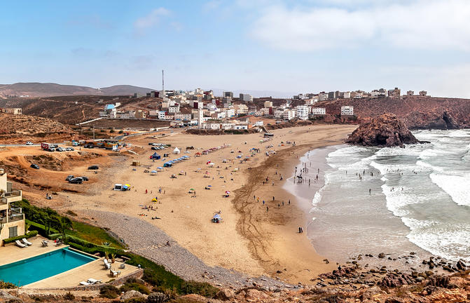 Mirleft est une charmante petite ville balnéaire située sur la magnifique côte atlantique du Maroc, à environ 30 minutes de route au sud de Tiznit. Bordées de grandes baies de sable doré soutenues par des affleurements spectaculaires de couleur ocre, et baignées par des eaux d'un bleu éclatant, les scènes côtières se prêtent bien à la photographie et à l'exploration, ainsi qu'aux sorties en famille, à la détente et aux sports nautiques, ainsi qu'à une scène de surf en constante expansion. Célèbre pour son atmosphère décontractée depuis les années 1970, alors qu'elle était une destination populaire parmi les hippies, les musiciens et les artistes, Mirleft a réussi à conserver son charme cosmopolite et compte désormais de nombreux bars et restaurants magnifiques face à la plage, ainsi que plusieurs attractions locales intéressantes. La variété des différentes plages est cependant le principal atout ici.