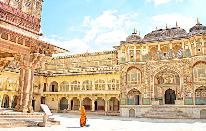 Jaipur, som har fått kallenavnet «Den rosa byen» på grunn av sine laksefargede terrakottabygninger, er hovedstaden og den største byen i delstaten Rajasthan. Den vakre byen er omkranset av de forrevne Aravali-åsene. Denne metropolen kombinerer tradisjon og modernitet med sine livlige basarer, overdådige palasser og eldgamle templer. Gå ikke glipp av den eventyrlige prakten til Amber Fort, som byr på medrivende lyd- og lysshow, det UNESCO-listede Jantar Mantar, en samling 300 år gamle astronomiske redskaper som ser ut som samtidskunst, og det overdådige City Palace, med sine palassbygninger, vidstrakte hager og stemningsfulle gårdsplasser. Jaipur ligger i Det gylne triangel, en populær turistrute som omfatter Delhi, Jaipur og Agra, og byen fungerer også som inngangsport til de nærliggende ørkenbyene Jaisalmer og Jodhpur.