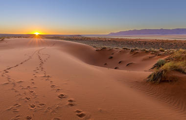 Sossusvlei is where you will find the iconic red sand dunes of the Namib. The clear blue skies contrast with the giant red sand dunes to make this one of the natural wonders of Africa and a photographers heaven. Aside from the attractions at Sossusvlei - Dune 45, Hiddenvlei, Big Daddy and Deadvlei - other attractions in the area include the Sesriem Canyon and Namib-Naukluft National Park, where the mountains of the Namib meet its plains.