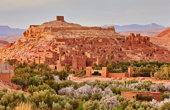 Taking up most of Africa’s north-western corner, the Atlas Mountains extend for roughly 2400 kilometres across Morocco, Algeria and Tunisia, reaching to over 4000 kilometres above sea level at their zenith, Toubkal Mountain. The Atlas range is exceptionally scenic and known for the many rare and endangered plants and animals occurring there, some of which are found nowhere else on earth. Visitors can explore some of North Africa’s most remote villages tucked away in the deep valleys of the rugged range, hike and bike through the spectacular scenery or visit the impressive kasbahs of Ouarzazate, Tifoultoute, Telouet and the magnificent Ait Ben Haddou, one of Morocco's most photogenic buildings.