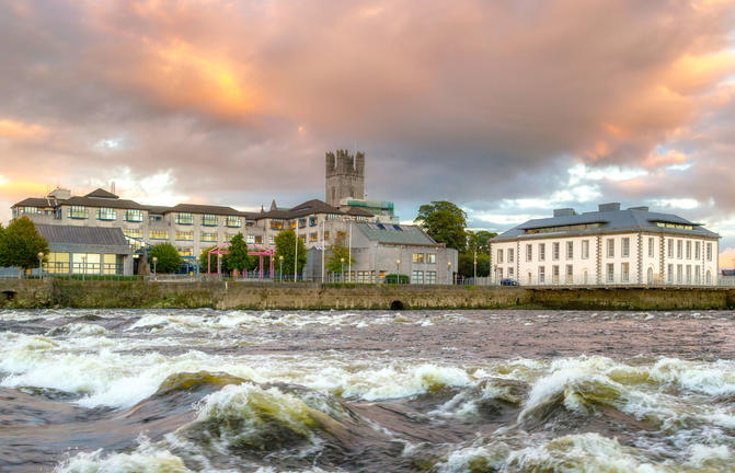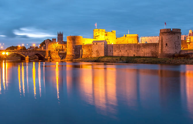 Situé dans la province de Munster, dans le sud de l'Irlande, Limerick se trouve sur les rives du plus long fleuve d'Irlande, le puissant fleuve Shannon. Cette ville dynamique offre à ses visiteurs une riche expérience culturelle, avec une architecture patrimoniale incroyable, une scène de festivals florissante et un large éventail d'autres attractions. Connue pour son charme unique et son histoire fascinante, Limerick possède une vieille ville ancienne avec des bâtiments géorgiens, la cathédrale Sainte-Marie de l'époque médiévale et la pittoresque place Saint-Jean. Vous pourrez déguster une cuisine locale, déguster une pinte dans un pub irlandais traditionnel, admirer le château du roi Jean datant du XIIIe siècle et visiter une variété de musées de premier ordre. Les amateurs d'art ne manqueront pas de visiter le Hunt Museum, qui présente une collection impressionnante d'œuvres d'art et d'artefacts, ainsi que la Limerick City Gallery of Art, située dans l'historique Carnegie Building. Ne manquez pas l'occasion de visiter le front de mer et la promenade récemment rénovés de Limerick.