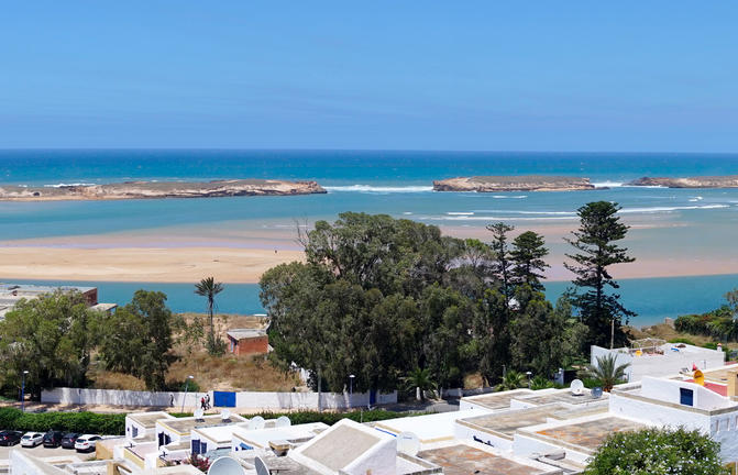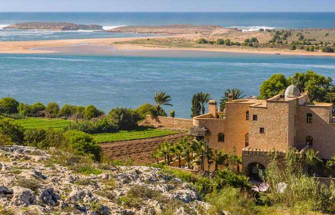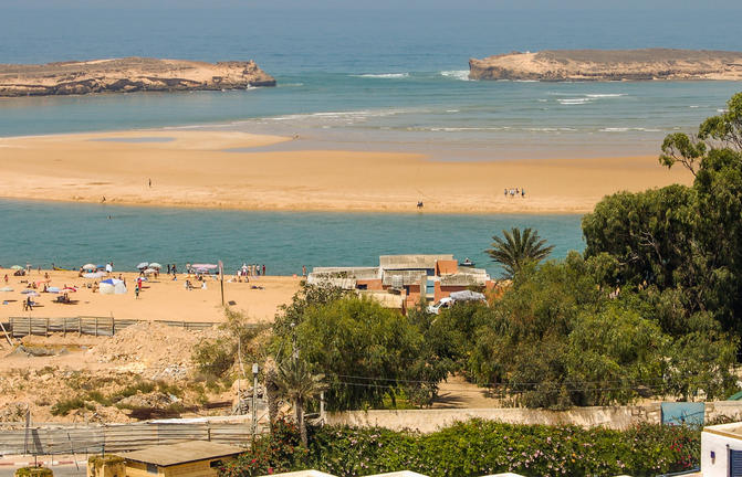 Située entre les deux villes de Casablanca et Marrakech, la station balnéaire d'Oualidia s'enroule autour d'un spectaculaire lagon d'eau de mer bordant le littoral marocain. Oualidia est un excellent endroit pour les surfeurs pour attraper quelques vagues et offre aux visiteurs un large éventail d'autres activités nautiques comme la planche à voile, le canoë, le kayak et les excursions de pêche. Les visiteurs peuvent passer une journée de détente sur la spectaculaire plage baignée de soleil, apercevoir une variété d'oiseaux migrateurs qui se reposent et se nourrissent dans la lagune scintillante, comme des flamants roses, des cigognes, des aigrettes et des parulines.