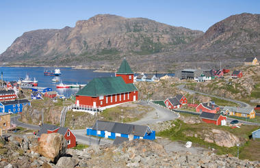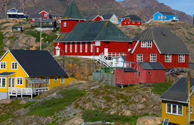 Set along Greenland’s west coast, Sisimiut lies north of the Arctic Circle, where tundra, low mountains, and rocky shoreline define the surroundings. Brightly painted wooden houses are scattered across the slopes, their colours standing out against snow and ice for much of the year. Trails from the town lead to nearby ridges for day hikes and connect to the long-distance Arctic Circle Trail, a marked route that stretches across western Greenland between Sisimiut and the small inland settlement of Kangerlussuaq. Frozen paths support dog sledging and snowmobiling in winter, while the harbour remains active with fishing boats connecting the settlement to surrounding waters. The Sisimiut Museum occupies historic colonial buildings and includes Greenland’s oldest church, Bethelkirken, also known as the Blue Church, with exhibits presenting the area’s history from the early Saqqaq culture to more recent centuries.