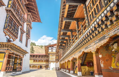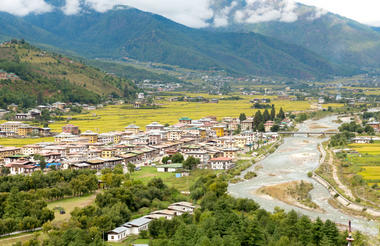 The town of Paro is set within a dramatic valley, framed by lush terraced rice fields and the winding Paro Chhu River. Rising above the town, towering mountains stand guard, their snow-capped peaks and deep gorges enhancing the area's natural beauty. Paro serves as a convenient gateway to the surrounding marvels of Paro Valley, with its vibrant main street lined with traditional wooden houses, local shops, and restaurants. Dominating the skyline, Paro Dzong, an imposing fortress built in 1644, shelters a monastery and administrative offices. Above the town, the National Museum is housed in an old watchtower, preserving relics from Bhutan’s rich past. For those seeking adventure, a trek to the Taktsang Monastery offers breathtaking views, while Paro's cultural calendar is enlivened by the Paro Tsechu festival. The surrounding valley provides ample opportunities for outdoor activities, including trekking, biking, and river rafting, with the world-renowned Snowman Trek standing as a true challenge for adventurers.