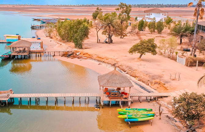 - Le lac Retba, aussi appelé lac Rose, est un spectacle naturel fascinant avec ses eaux aux reflets roses dus à la concentration de sel et d’algues.