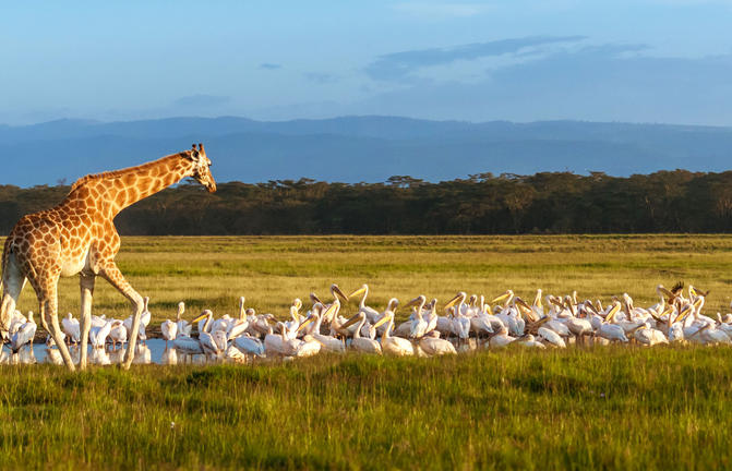 Situé dans la vallée du Grand Rift, entouré de bois d'acacia jaune et d'arbustes touffus, le parc national du lac Nakuru a été créé pour protéger le lac et ses grands troupeaux de petits flamants, attirés par les algues qui prospèrent dans les eaux salines de ce lac soude. Le parc national est habité par plus de 50 espèces de mammifères, dont l'hippopotame, le rhinocéros noir et blanc, la girafe Rothschild, le buffle et l'eland. Connu comme le paradis des observateurs d'oiseaux, le parc abrite plus de 450 espèces d'oiseaux. Les visiteurs pourront faire de la randonnée dans le paysage pittoresque, pique-niquer à côté de ce magnifique lac et découvrir toute une gamme de faune sur une promenade de chasse. Ne manquez pas l'occasion de visiter la magnifique cascade de Makalia.