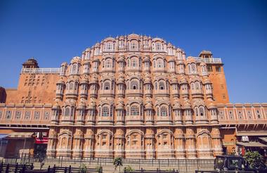 Die Fassaden leuchten in einem pink-orangen Farbton, zwischen den bezaubernden Häusern mit winzigen Fenstern, geschwungenen Balkonen und Kuppeldächern werden Obst und Gemüse, farbenfrohe Teppiche und schillernde Saris verkauft. Nebenan der rosarote Palast der Winde mit zarten Blumenmustern, hier konnten die Haremsdamen das Leben auf den Straßen von Jaipur ungestört beobachten, ohne selbst gesehen zu werden.