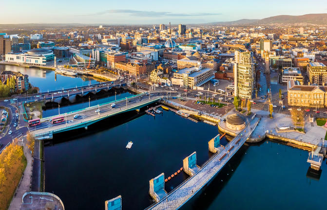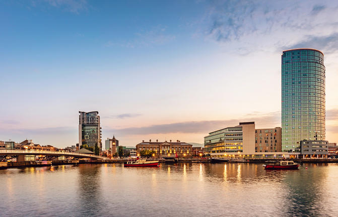 Idéalement située à l'embouchure de la rivière Lagan, sur la côte est de l'Irlande du Nord, la capitale animée de l'Irlande du Nord, Belfast, regorge de surprises. Découvrez cette charmante ville regorgeant de boutiques et de pubs victoriens pittoresques, de restaurants innovants et branchés et d'une architecture grandiose. Avec sa scène musicale traditionnelle en plein essor, sa communauté créative florissante et ses nombreux musées impressionnants, dont l'Ulster Museum, situé dans les jardins botaniques luxuriants, cette ville a de quoi ravir même les amateurs de culture les plus passionnés. Animé de culture et de divertissement tout au long de l'année, les voyageurs peuvent visiter le Belfast Titanic Centre, de renommée internationale, le « Cathedral Quarter » centré autour de la magnifique cathédrale Sainte-Anne et le Waterfront Hall, l'impressionnante salle de concert de Belfast qui propose certaines des meilleures salles de spectacle acoustique dans toute l'Europe.