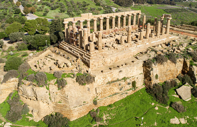 Un mélange évocateur de ruines anciennes, d'architecture baroque et de plages bleues étincelantes englobent la province d'Agrigente, sur la côte sud-ouest souvent négligée de la Sicile. Des côtes époustouflantes d'eaux turquoises et de plages de sable blanc bordent l'arrière-pays historique qui abrite quelques-unes des attractions les plus étonnantes de l'île. Les voyageurs curieux sont attirés par la ville d'Agrigente, capitale et centre agricole de la région. Une visite de la Vallée des Temples est impressionnante alors que les passionnés d'histoire s'émerveillent des temples d'Hercule, Juno, Zeus et Concordia sur l'un des sites archéologiques les plus illustratifs du monde de la période grecque classique. Parmi les autres sites incontournables figurent les villages médiévaux, les villes portuaires tranquilles, l'escalier des Turcs (un escalier calcaire situé sur la côte de Realmonte) et d'innombrables restaurants qui proposent des fruits de mer appétissants, du fromage et du vin.