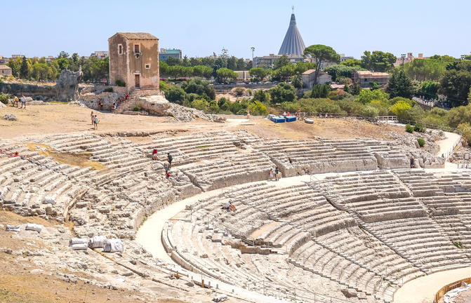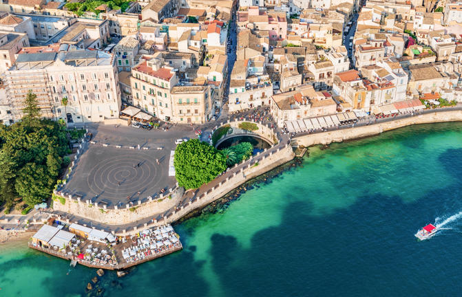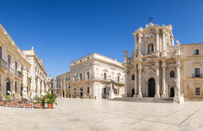 Située le long de la côte ionienne de la Sicile, la ville italienne de Syracuse est connue pour sa beauté intemporelle, ses vergers d'agrumes et ses ruines anciennes bordées par l'océan bleu scintillant. Les amateurs d'histoire peuvent visiter l'un des plus grands sites archéologiques de la Sicile, le Parco Archeologico della Neapolis, qui abrite le théâtre romain de 1600 000 capacité, le Teatro Greco du 5ème siècle et l'Orecchio di Dionisio, une fascinante grotte de calcaire. Autrefois la plus grande ville du monde antique, et datant de 734 avant JC, aujourd'hui les vestiges de cette époque spectaculaire et les anciens sites historiques restants peuvent encore être appréciés par les visiteurs. Sirotez un expresso dans un café local, promenez-vous dans les piazzas baroques et explorez les ruelles médiévales sinueuses qui traversent cette belle ville. Ne manquez pas l'occasion de visiter le Museo Archeologico Regionale Paolo Orsi, qui expose des objets et des œuvres d'art locaux.