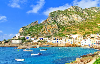 La gran isla de Sicilia se encuentra justo al lado de la «bota» de Italia, y es un destino cosmopolita que combina a la perfección el arte, la historia y el folclore africanos y europeos en un elaborado tapiz cultural. Un día en esta extraordinaria isla puede incluir cualquier cosa, desde nadar junto a impresionantes ruinas antiguas, esquiar por las laderas de un volcán cubierto de nieve o tomar un granizado en un pintoresco café junto al mar. Sicilia está dividida en nueve provincias, cada una con características geográficas únicas. En el noreste, los visitantes encontrarán bosques sorprendentemente exuberantes, mientras que las regiones centrales muestran un paisaje escarpado e interminables colinas ondulantes. Agregue a esto los huertos de almendros con flores rosadas, las impresionantes salinas y los molinos de viento de Trapani, y comenzará a comprender por qué visitar Sicilia puede ser como visitar muchos países diversos, todos envueltos en una pequeña isla paradisíaca.